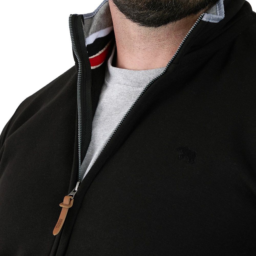 - Stitched brand logo on left arm & leather-like zip toggle