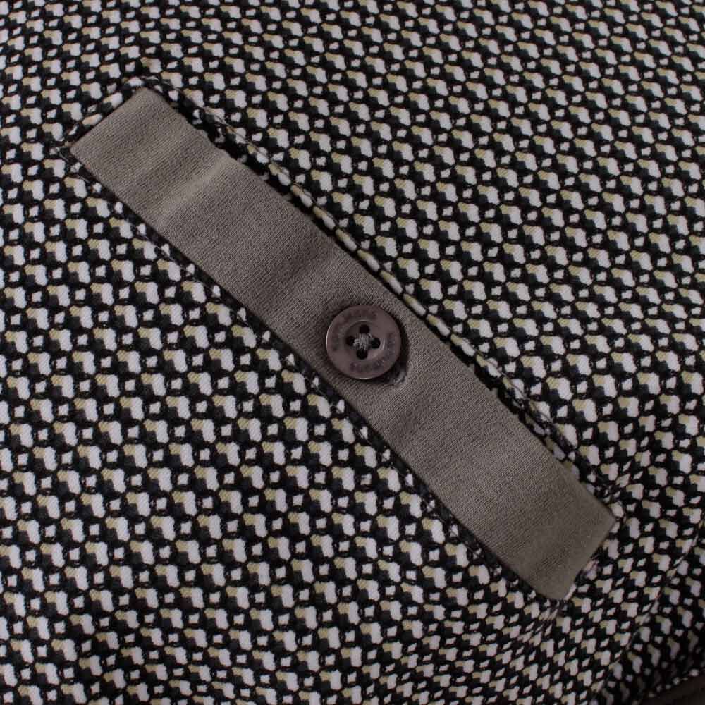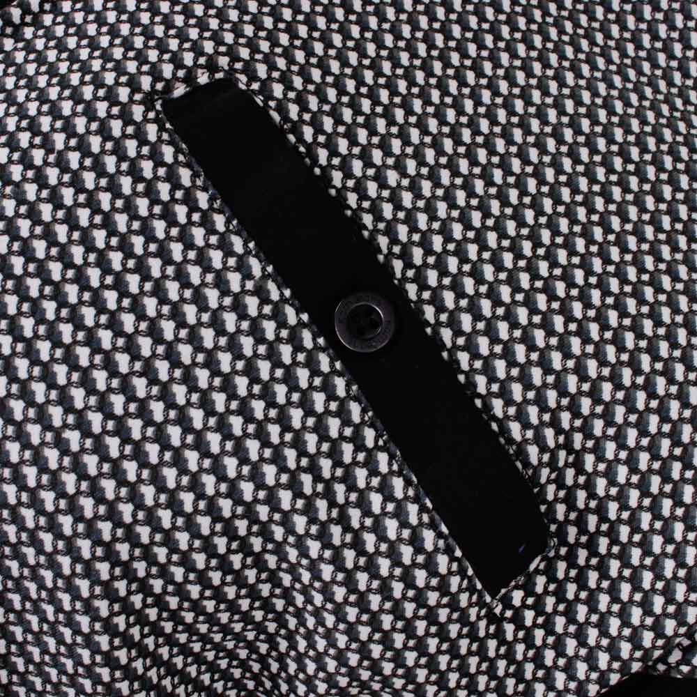 • Front geometric design, with metal brand name near hem